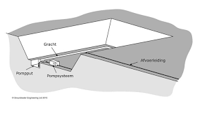 Zoals de naam het zegt werkt deze installatie vanuit een open put of greppel. Het water wordt (al dan niet gravitair) afgeleid naar deze put. Vanuit de zogenaamde pompput wordt het water weggepompt. Belangrijk om te onthouden voor de komende technieken is dat bij dit soort installaties geen filterbuizen in de grond gestoken worden. Het gaat dus niet altijd over opkomend grondwater.