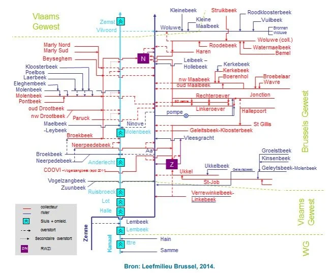 A Bruxelles le canal est un des plus grands eaux de surface. Cette veine bleue a comme fonction le transportation mais aussi un fonction de bassin de rétention. Pendant des grands orages il peut retenir le trop de l’eau et préserver les quartiers autours pour des inondations. Ceci fait qu’il sert comme solution durable pour le rejet de l’eau souterraine.