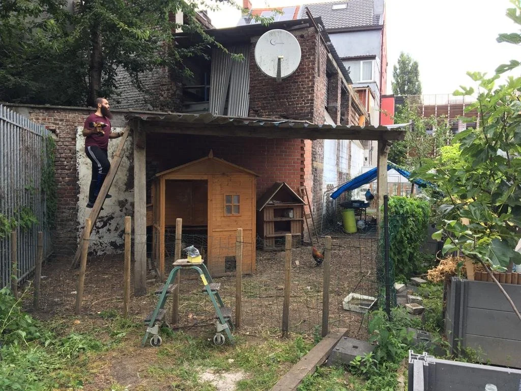 Afin de réaliser l’installation, le système actuel a été examiné et mesuré. De cette façon, une proposition a pu être élaborée et les matériaux nécessaires fournis. L'un des défis consiste à rénover le toit au-dessus du poulailler afin que l'eau puisse également y être recueillie. Des panneaux de toit récupérés ont été trouvés à In-limbo et sciés sur mesure. Bientôt, la première version de l'installation sera placée dans le potager en collaboration avec les maraîchers.